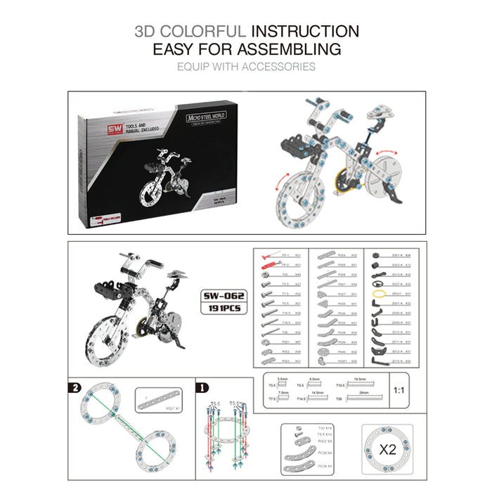 3D Metal Puzzle Bicycle Assembly DIY Kit Model Toys Kit Adults Kids -191PCS