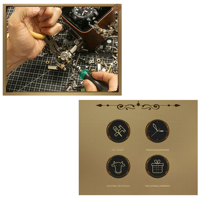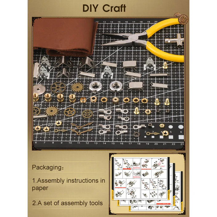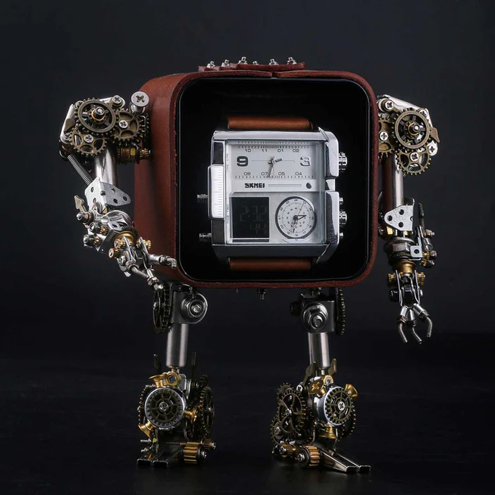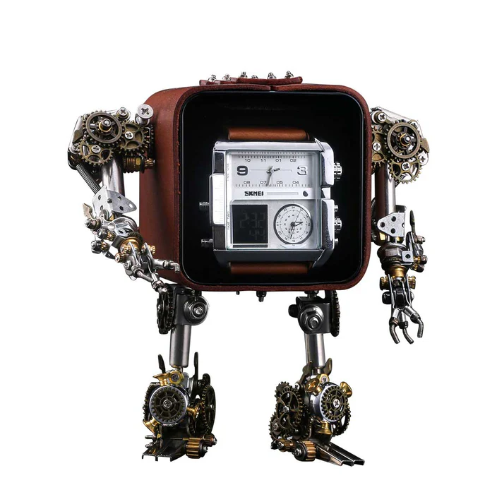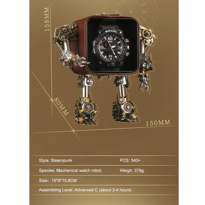 3D Metal Steampunk Craft Puzzle Mechanical Robot Watch Stand Timer Display Model DIY Assembly Chronos Watch Bracket Creative Gift-540PCS+