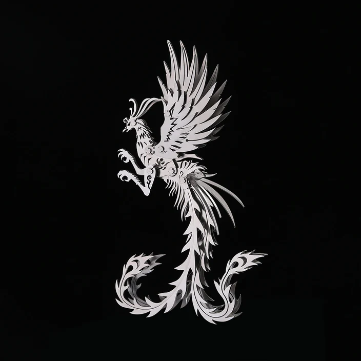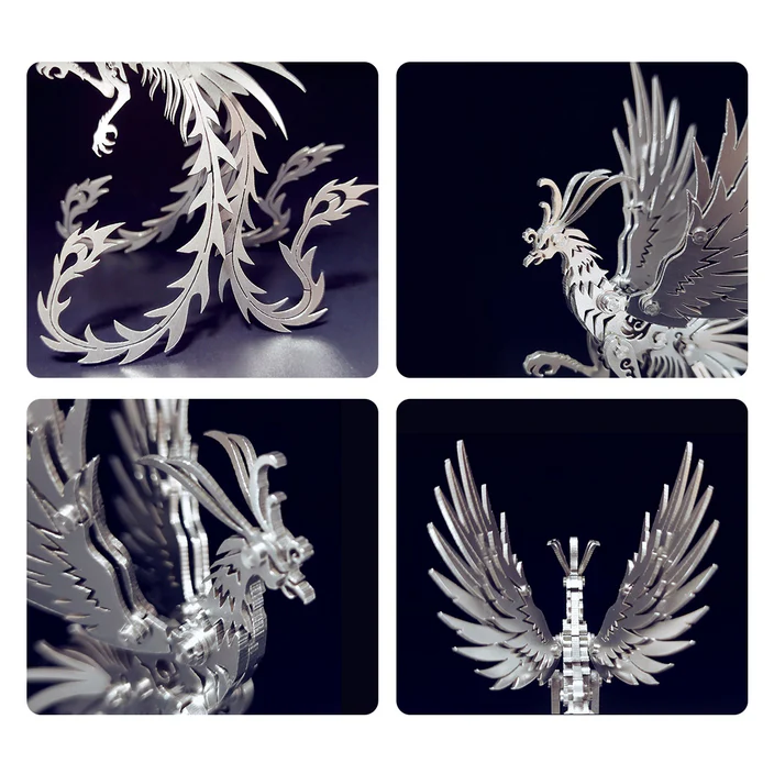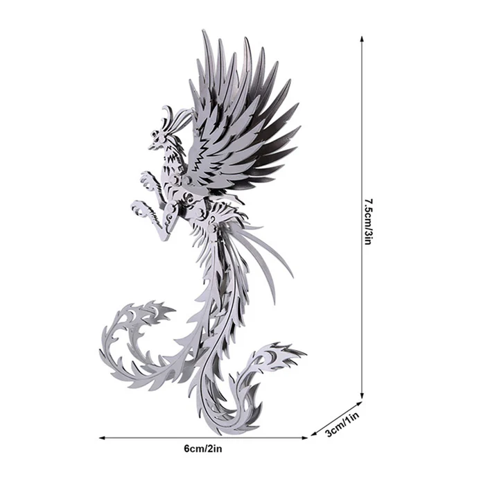 3D Puzzle Model Kit Mechanical Oriental Mystery Creature Silver Phoenix Metal Games DIY Assembly Jigsaw Crafts Creative Gift