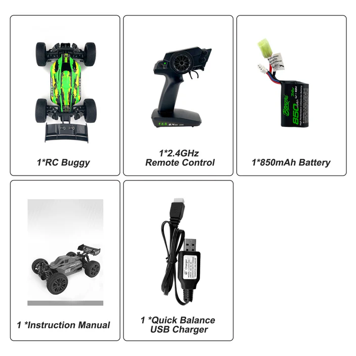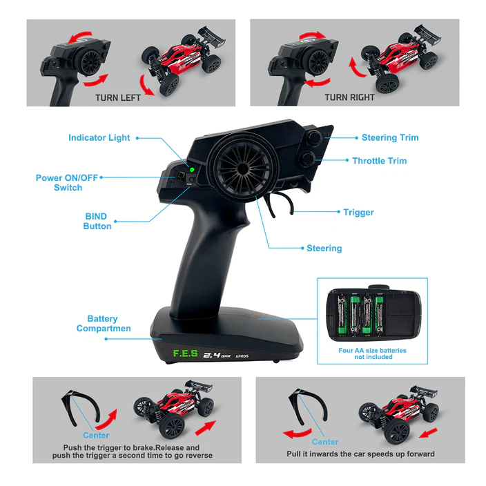 .The easy-to-operate 2.4GHz frequency remote control makes the vehicle ready to run at any time, with strong anti-interference. The RC car provides high-speed and stable running performance, allowing you to enjoy a wonderful racing experience.