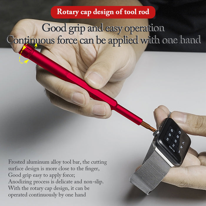 Designed with a screw cap on the top rod, the screwdriver can be operated by one hand for one-handed control. Comes with a variety of spare practical tools including picks, retrieve card pins, magnetizer, and so on.