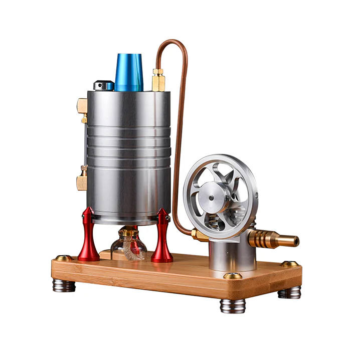 Retro All-metal Vertical Steam Engine Model with Base, Boiler and Alcohol Lamp