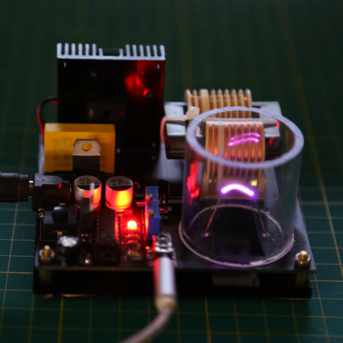 Plug the power supply to the circuit board and press the switch to generate an arc. The normal version uses an audio cable to connect the mobile phone and the plasma speaker to play music. The Bluetooth version waits 10 seconds after the phone is turned on. The mobile phone searches for Bluetooth “HW” connection. Can play music.