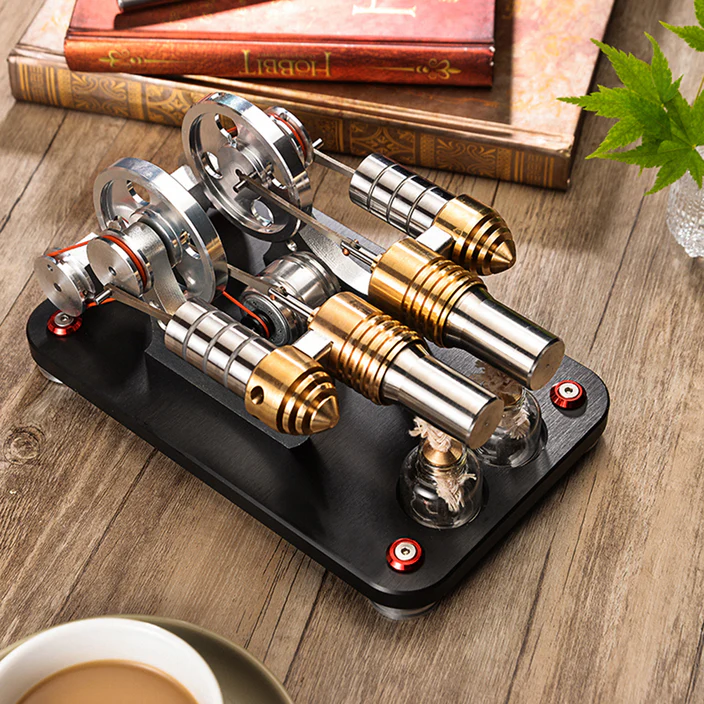 Stirling Engine 2-cylinder Parallel Metal Bootable Model Micro External Combustion Engine Model