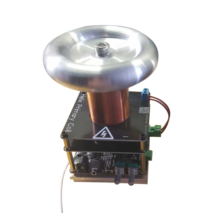 .Notes: 1. When the product is working, do not directly touch the arc with your hands. You need to adjust the arc to a length of less than 10MM before you can use the hand-held metal conductor to contact; 2. During the working of the coil, it will affect the surrounding electronic products Cause serious interference, this is the characteristic of the Tesla coil itself, please do not let mobile phones or other electronic products close to the Tesla coil to avoid damage; 3. The high temperature and high pressure arc output of the Tesla coil will cause the gas in the air to form other Compounds, including ozone and nitrogen oxides, so please keep the environment well ventilated when working; 4. The high temperature arc of the Tesla coil can ignite flammable objects. Please do not use the coil in a flammable and explosive environment; 5. Special After the SLA coil is energized and running, please do not touch the secondary coil directly. There will be a certain induced voltage in the secondary coil. Let it stand for at least 30 minutes, and wait for the natural discharge